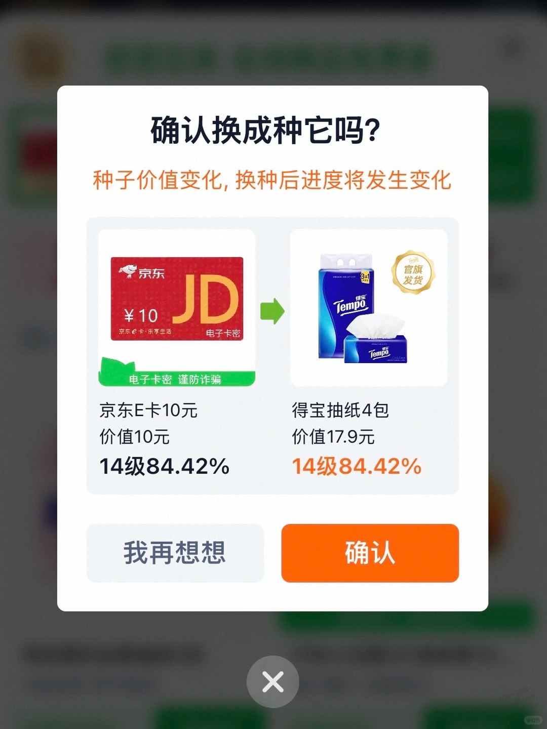 目前换种比较值有10元E卡 B站月卡 得宝抽纸