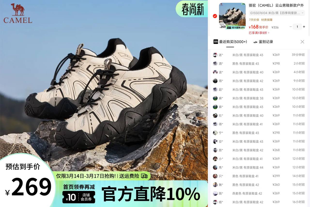 骆驼云山登山鞋五折到手168 得物269